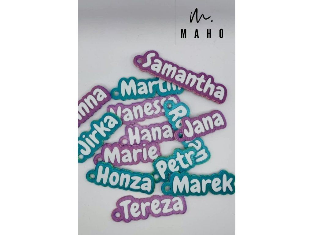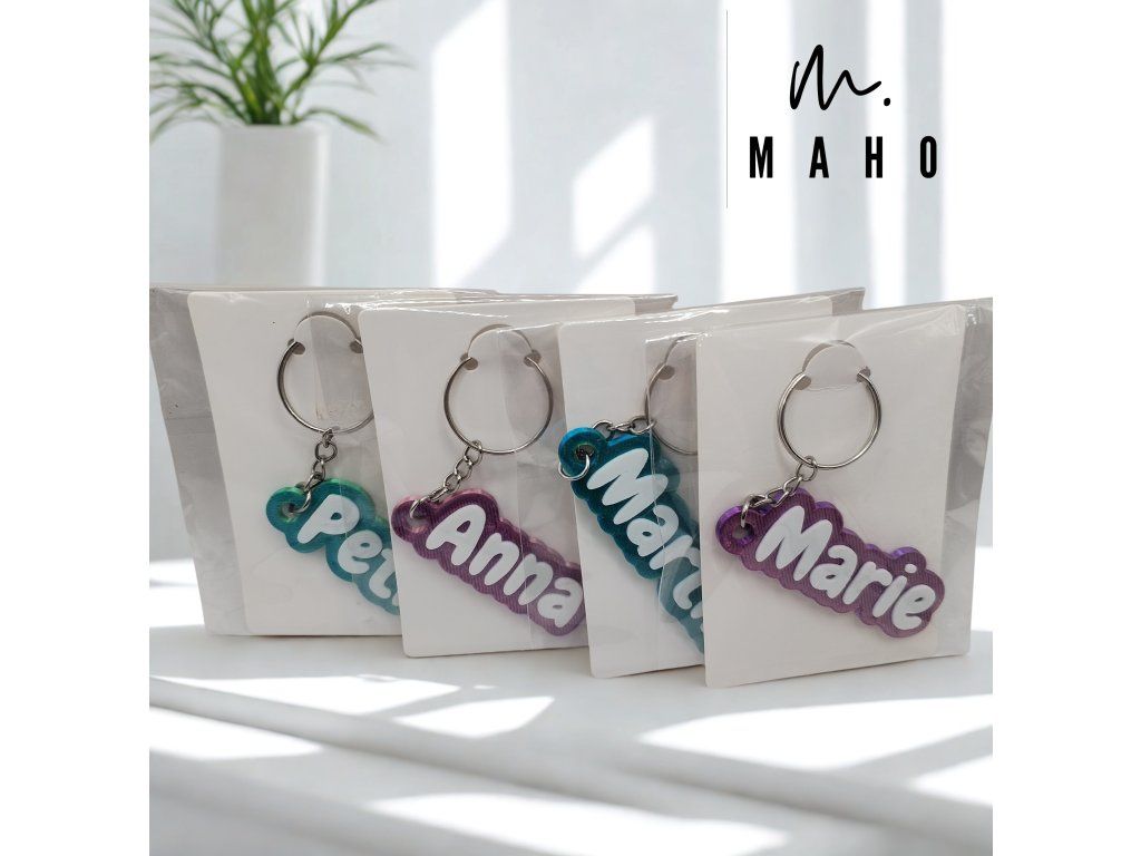 Vyrábíme jmenovky na klíče na zakázku pomocí 3D tisku – se jménem podle vašeho přání.