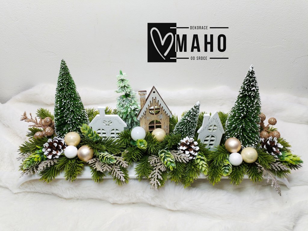 Vneste si domů kouzlo Vánoc s touto nádhernou zimní dekorací, která vás okouzlí na první pohled. Plastová ikebana v délce 47 cm je plná detailů – zasněžené stromky, dřevěné domečky, šišky a vánoční ozdoby vytvářejí pohádkovou atmosféru, která rozzáří každý interiér.
